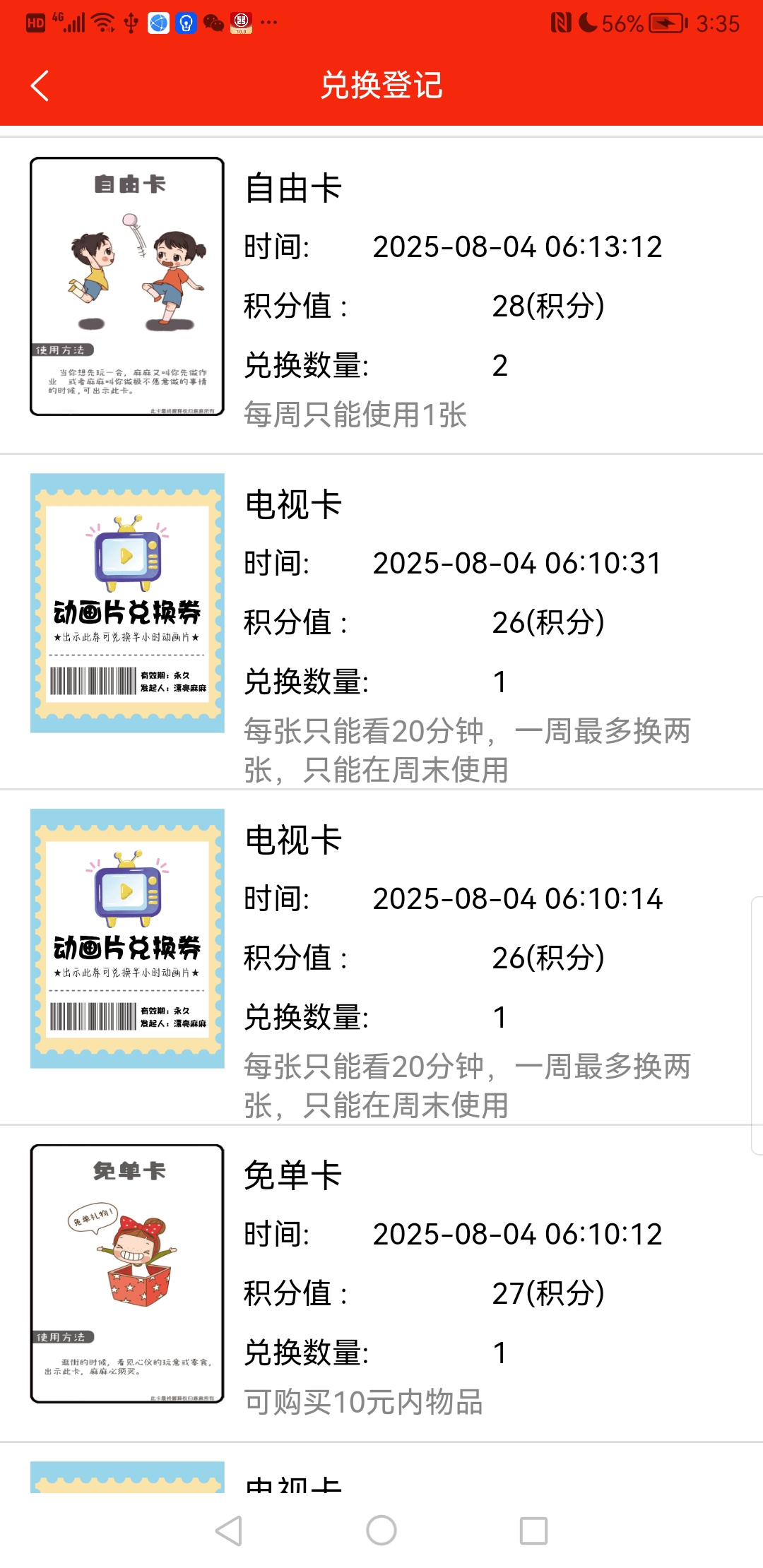 兑换登记即兑换的商品列表